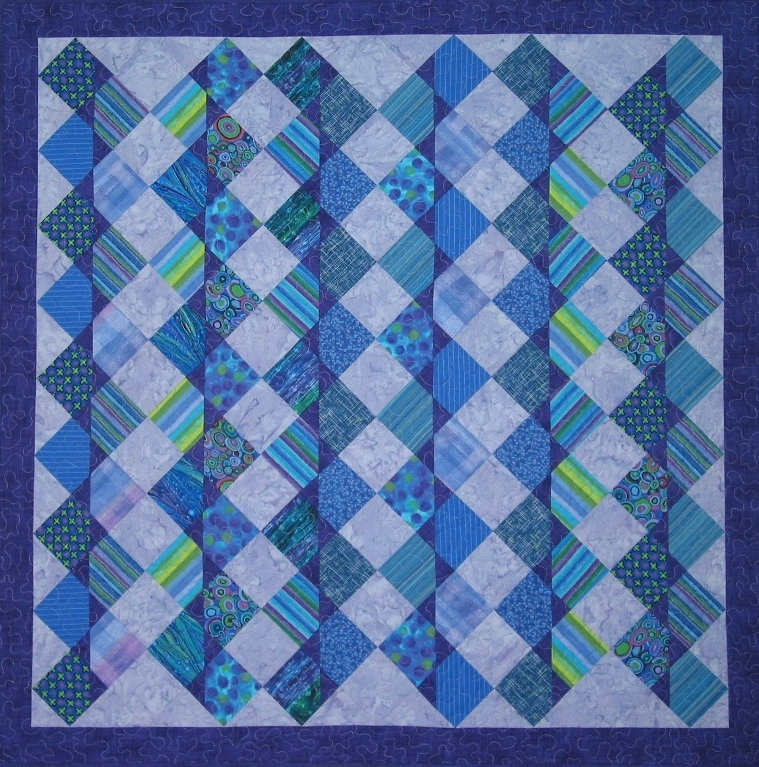 This baby quilt is constructed completely of commercial cottons and batiks. It's designed to be used, loved, and put through the washer and dryer. I chose colors and prints that were reminiscent of Guatemalan textiles but in a restful and soothing palette.