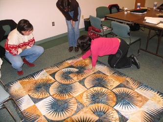 It seemed right that this should be a group effort, but I had no idea how generous my quilting friends would be with their time and fabric. Some of the fabric in the quilt came from my stash. Kathy Lincoln and Linda Snow were quick to add fabric from their batik collections. Other fabric came from a variety of stores, including SewBatik.com.
